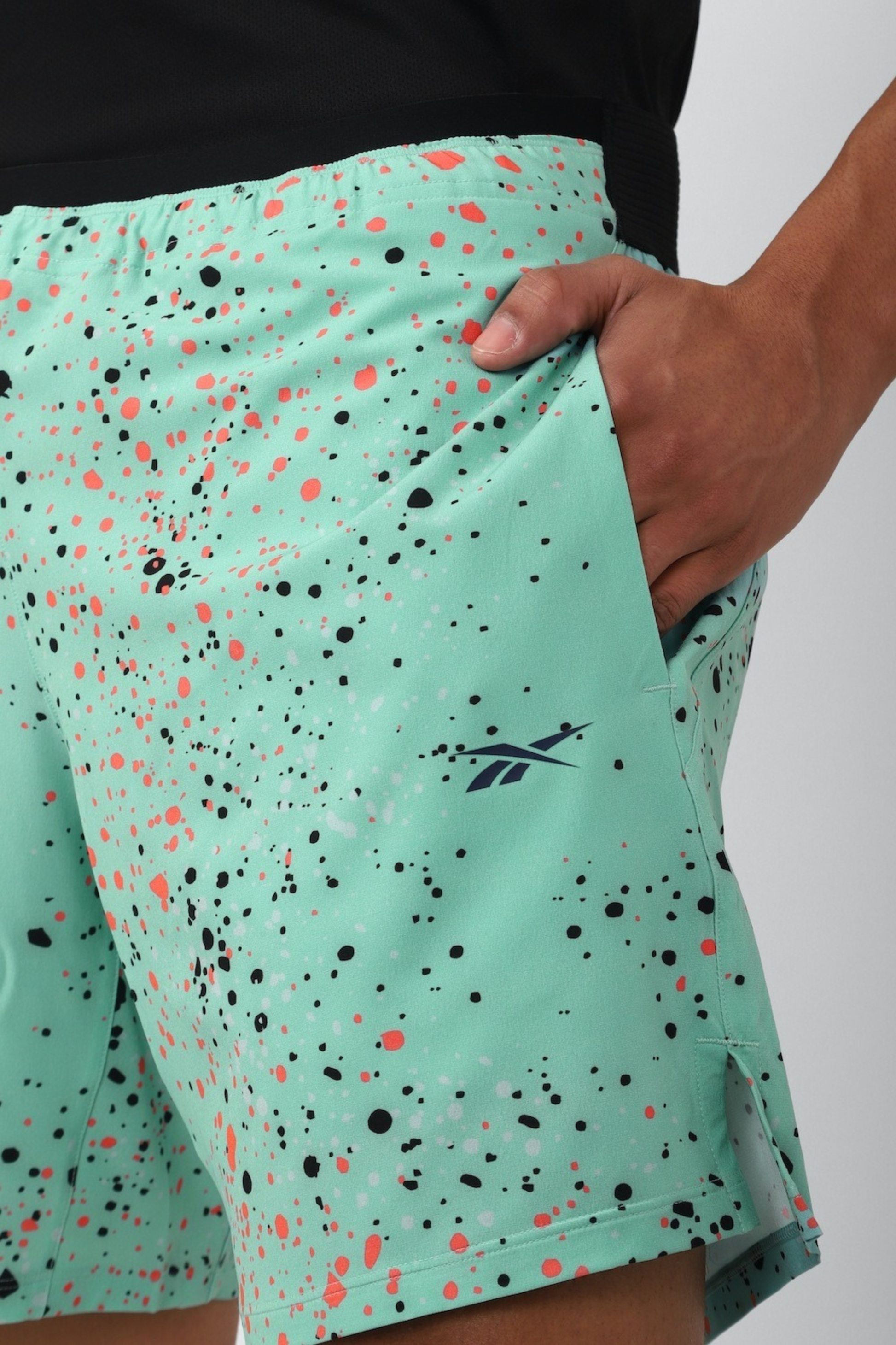Os calções Reebok TS Epic AOP foram concebidos para atletas que procuram o máximo desempenho em treinos de alta intensidade, como CrossFit, treino de força ou cardio. Este modelo combina um design leve e elástico com um padrão gráfico integral (All-Over Print) moderno, oferecendo não só um visual arrojado, mas também a liberdade de movimentos necessária para agachamentos, saltos e sprints.