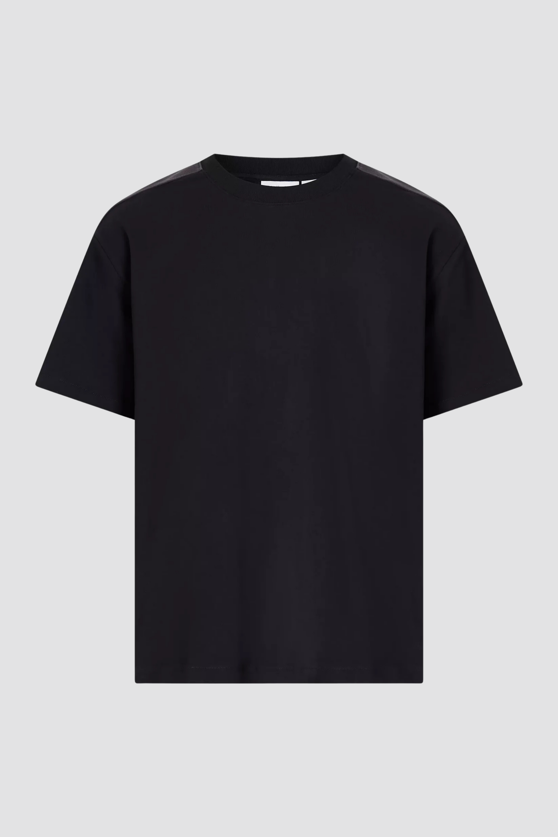 Regular Fit - T-shirt Preta com fita lateral em cinza