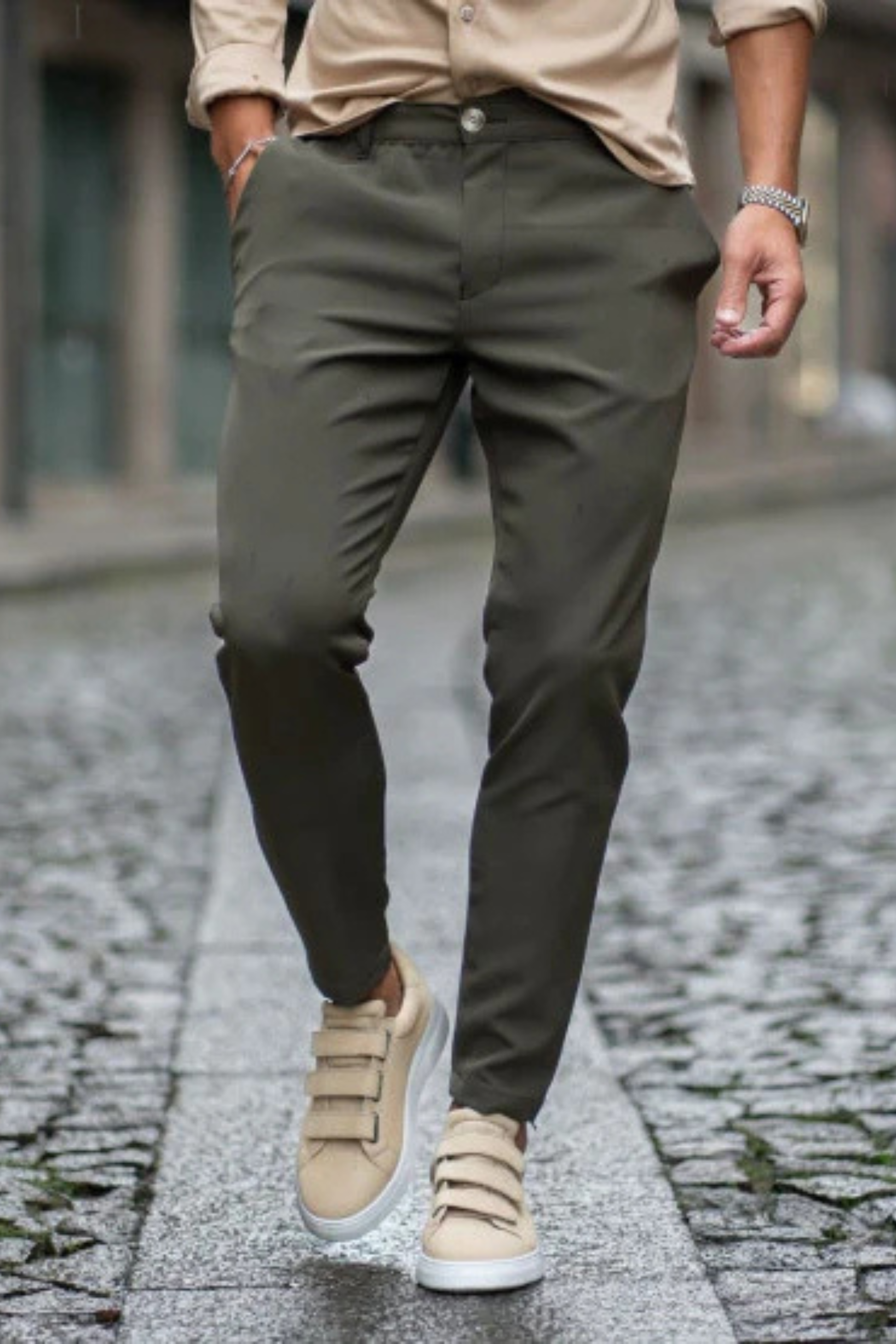Calça slim fit de tecido com bainha regular. Projetadas com o foco de serem práticas, confortáveis e elegantes em qualquer situação. A mistura de algodão e elastano concede um toque suave, liberdade de movimento e faz com que o material estique. É slim fit e finalizada com elástico na cintura. Ideal tanto para um look casual como clássico.
