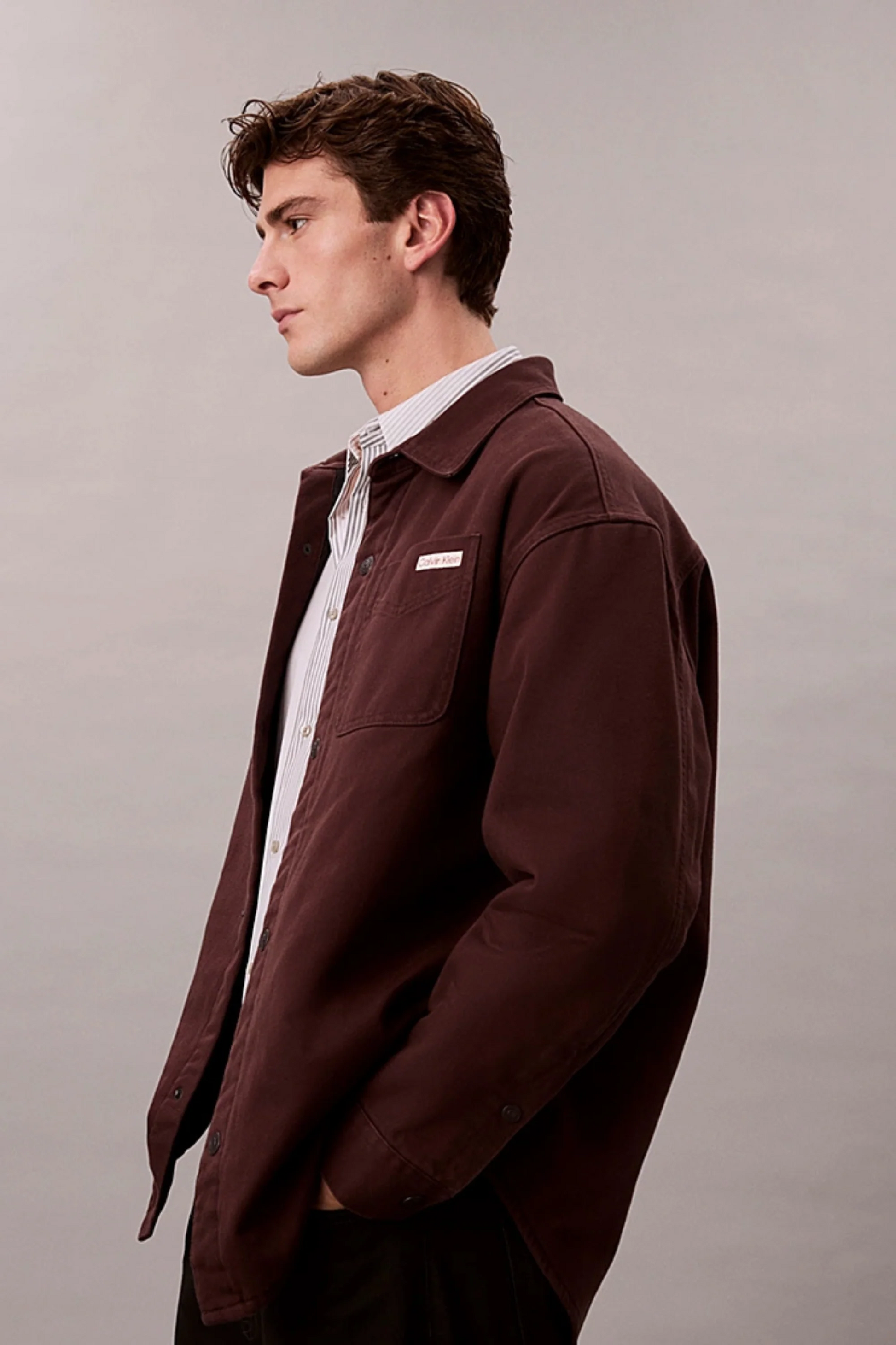 - Camisa-casaco em ganga com gola clássica e fecho frontal com botões
