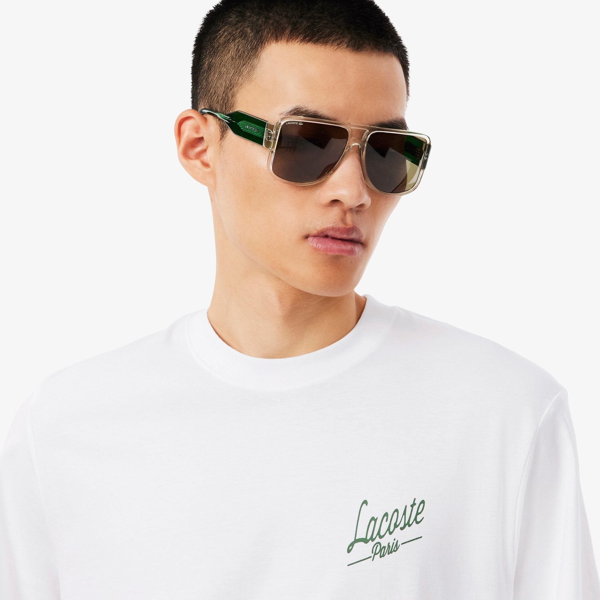 Esta T-shirt é uma lição de estilo icónico da Lacoste, criadora de sportswear desde 1933. Confecionada em malha jersey de algodão confortável, apresenta grandes estampados gráficos para um resultado ousado. Finalizada com detalhes premium e o emblemático crocodilo bordado.