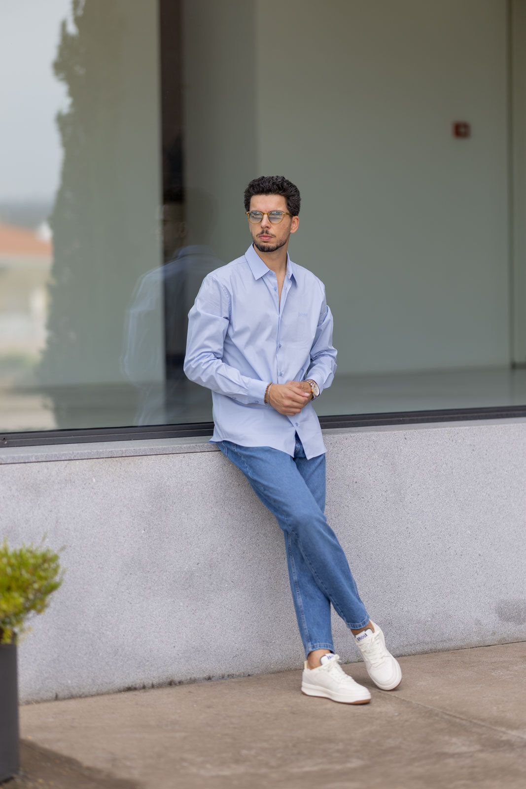 Com assinatura da Just Cavalli, esta camisa azul claro alia sofisticação e conforto com um toque moderno. Concebida para homens que valorizam estilo e qualidade, destaca-se pelo corte descontraído e pela textura leve do tecido, ideal para um visual cuidado mas sem esforço.