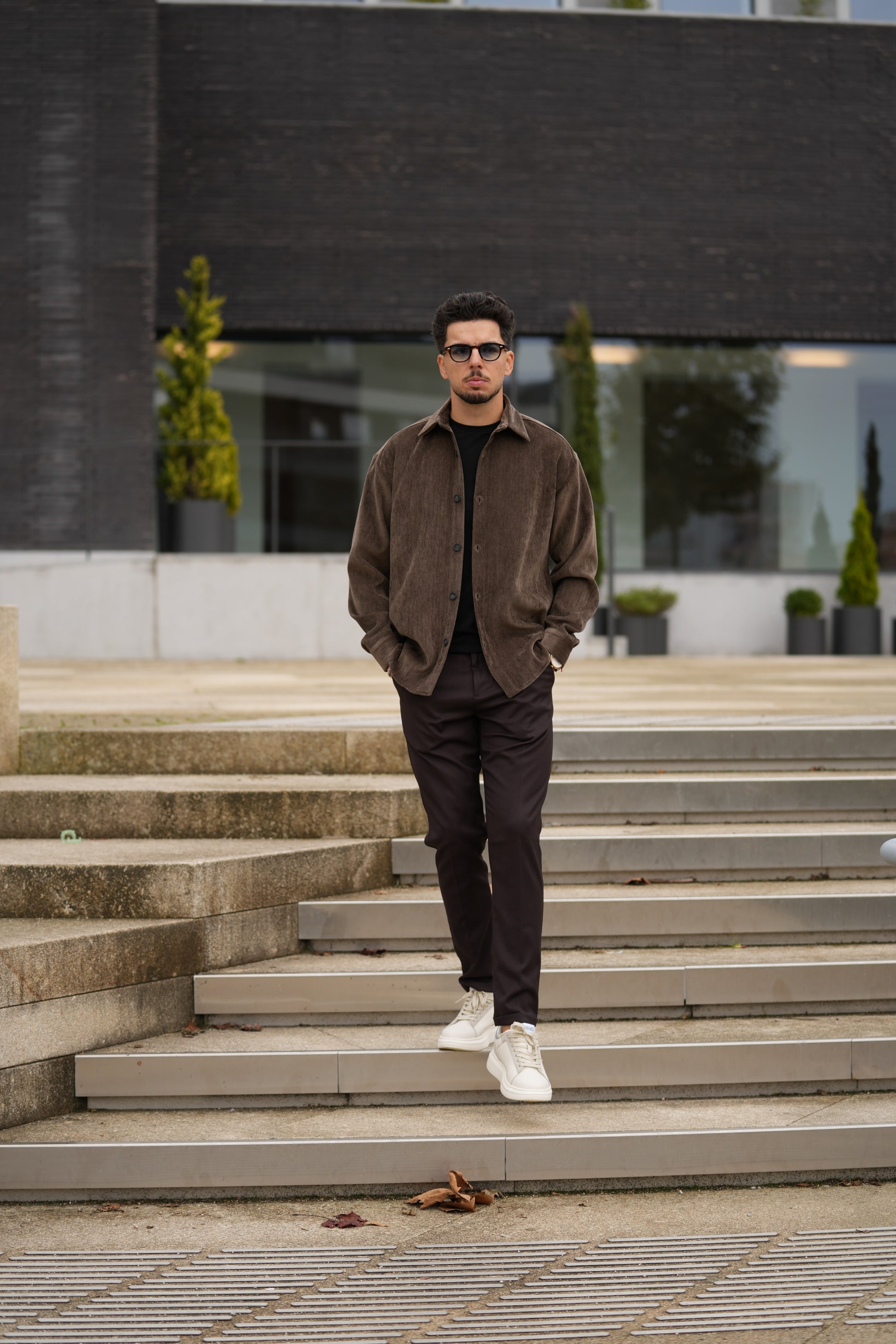 Textura e elegância num só design. Esta camisa em veludo castanho combina um toque sofisticado com um visual descontraído e moderno. O tecido de textura suave confere conforto e requinte, tornando-a ideal para dias mais frios ou para quem gosta de peças com presença.