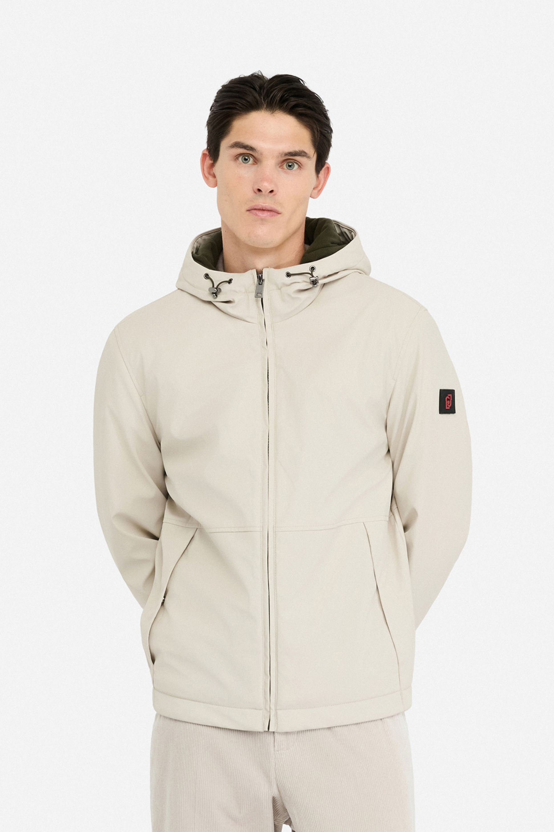 Casaco de chuva com capuz, leve e prático, feito para te proteger nos dias de mau tempo sem perder o estilo.