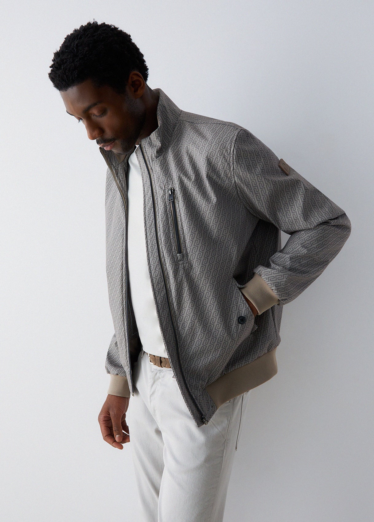 Confeccionado em tecido técnico elástico, oferece conforto, leveza e liberdade de movimentos. O design inclui bolsos frontais com aba, bolso com fecho no peito e patch com logo na manga, reforçando um estilo sofisticado e versátil.