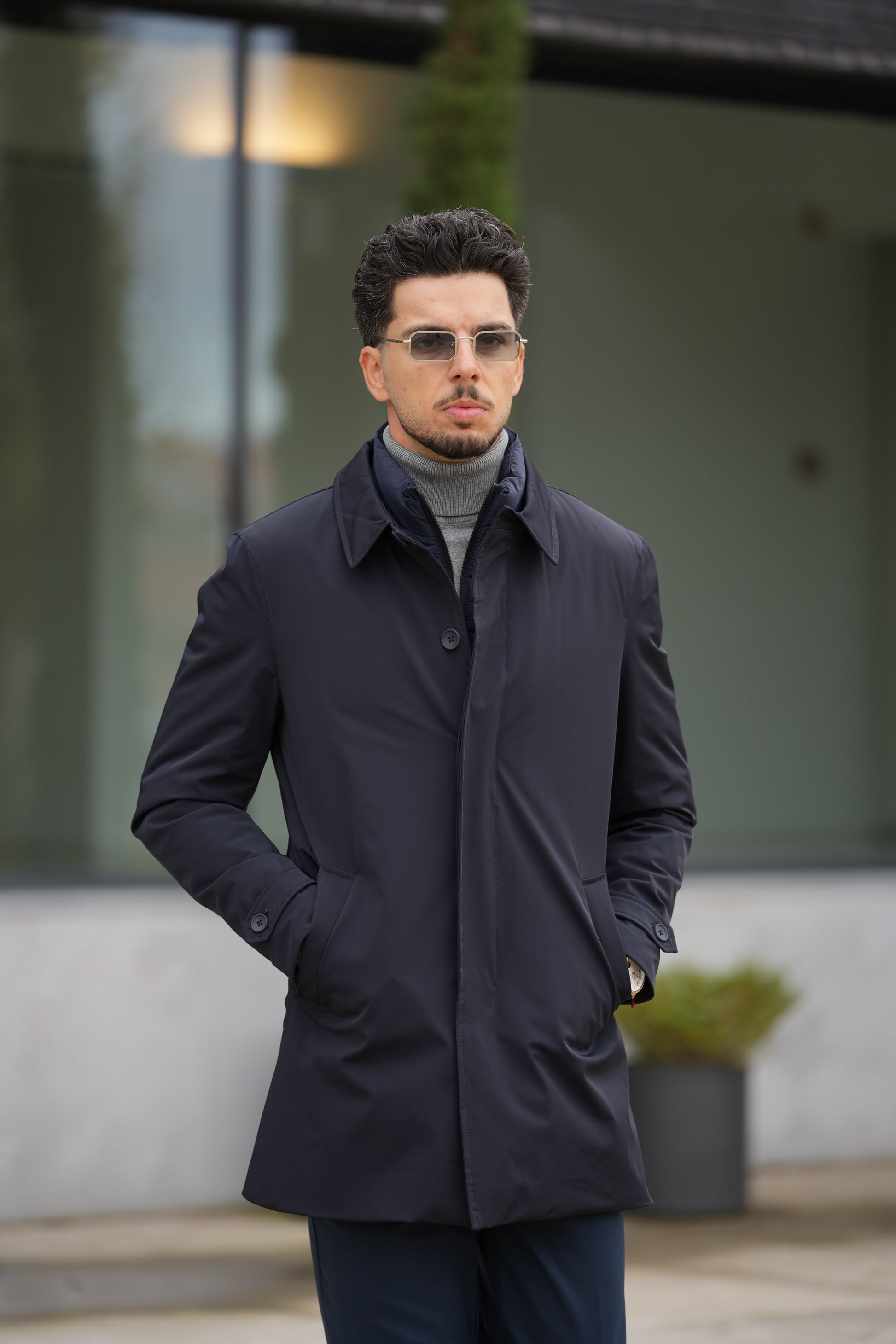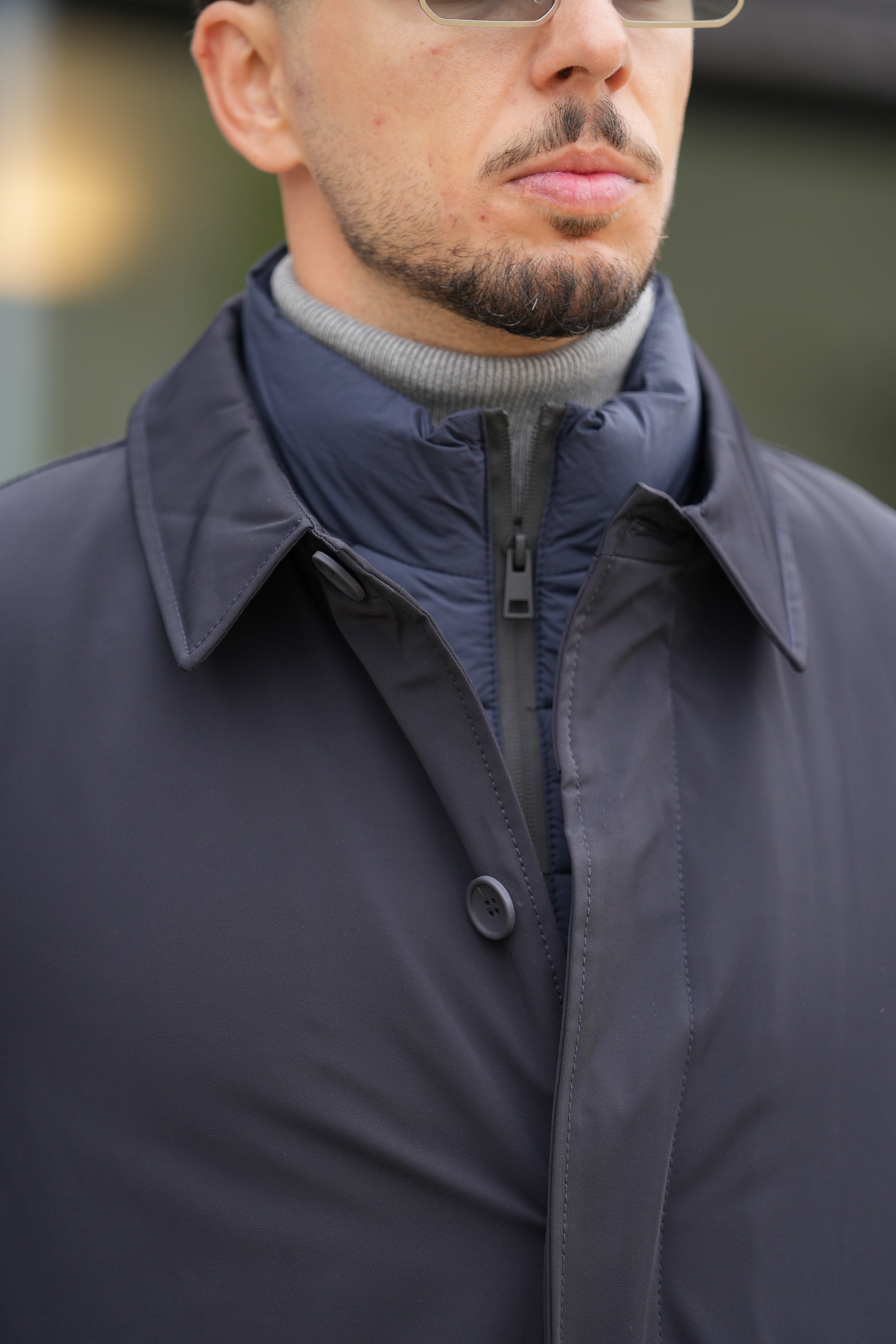 Sofisticação e funcionalidade num só design – este casaco técnico em tom azul-noite foi criado para o homem que procura elegância moderna sem abrir mão do conforto. O corte slim e o forro acolchoado destacável garantem um visual impecável em qualquer ocasião – ideal para dias frios e ambientes urbanos.