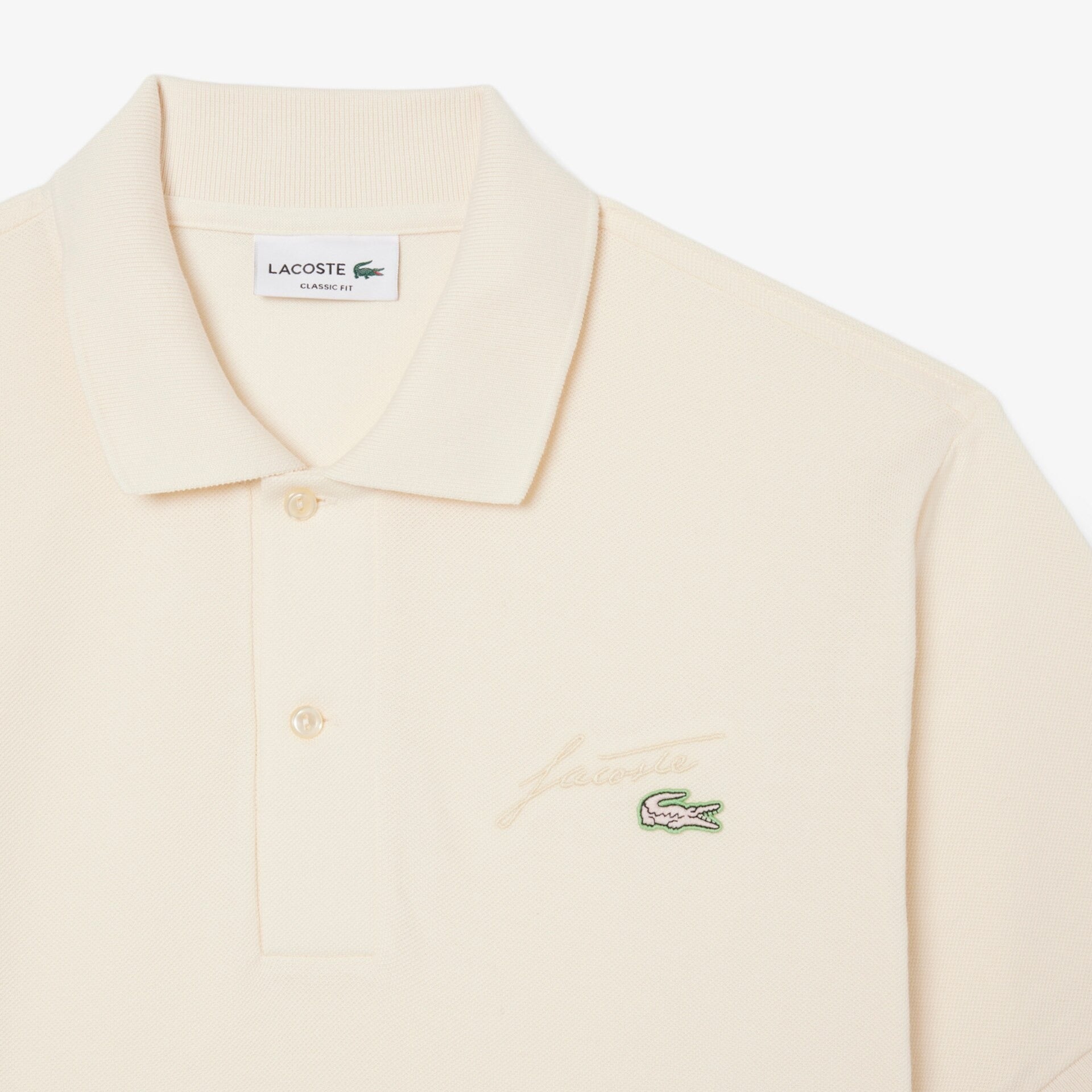 Um estilo icónico da Lacoste pelos inventores da camisa pólo em 1933. Feita com o nosso tecido Petit Piqué exclusivo, com um subtil detalhe bordado com a assinatura do nosso fundador, René Lacoste. Uma peça sofisticada com detalhes premium, com acabamento em crocodilo e gola canelada.- Tecido piqué de algodão orgânico