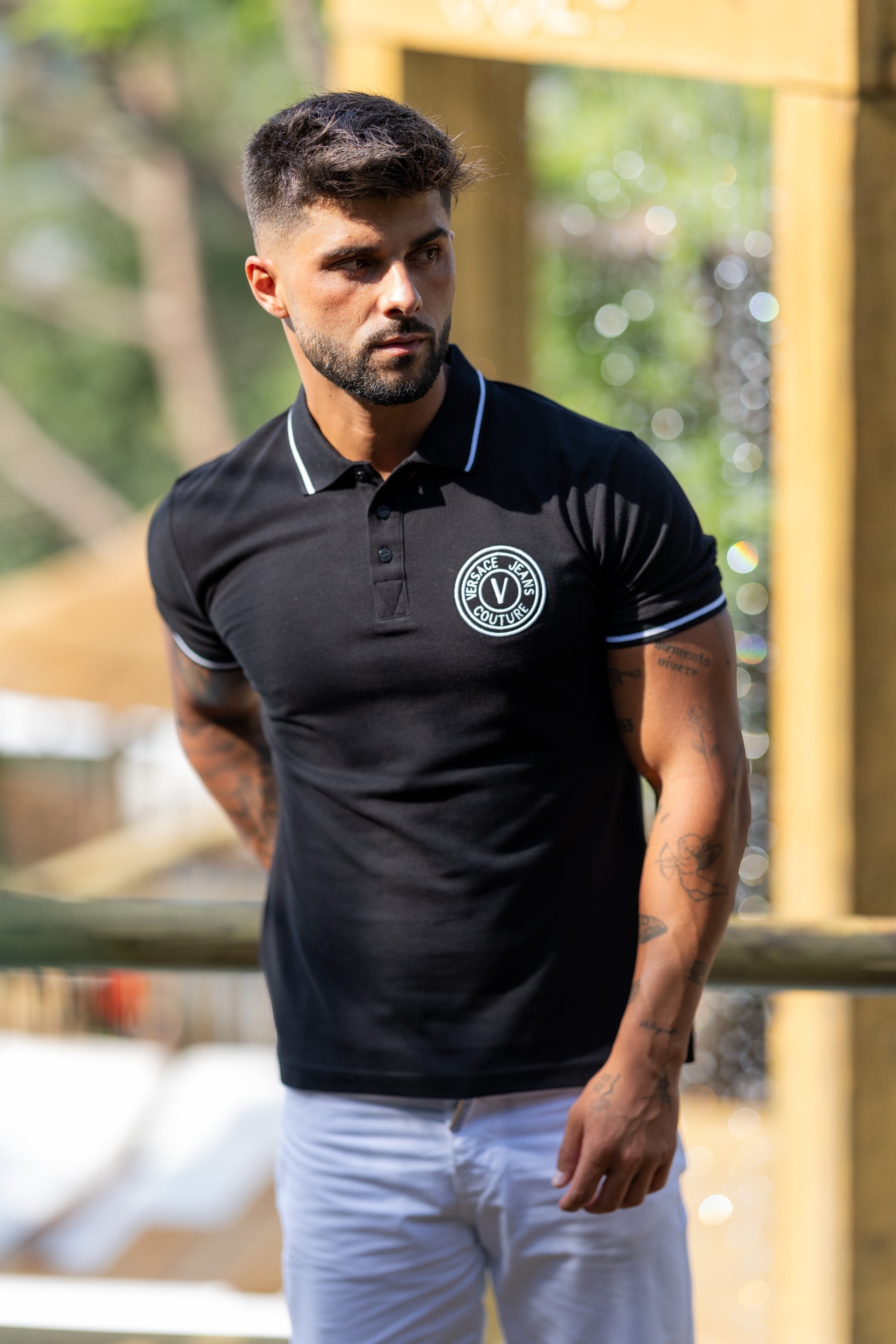 Este polo da Versace Jeans Couture combina estilo contemporâneo com conforto premium. Confeccionado em 100 % algodão, oferece um toque macio e respirável — ideal para um look casual sofisticado.
