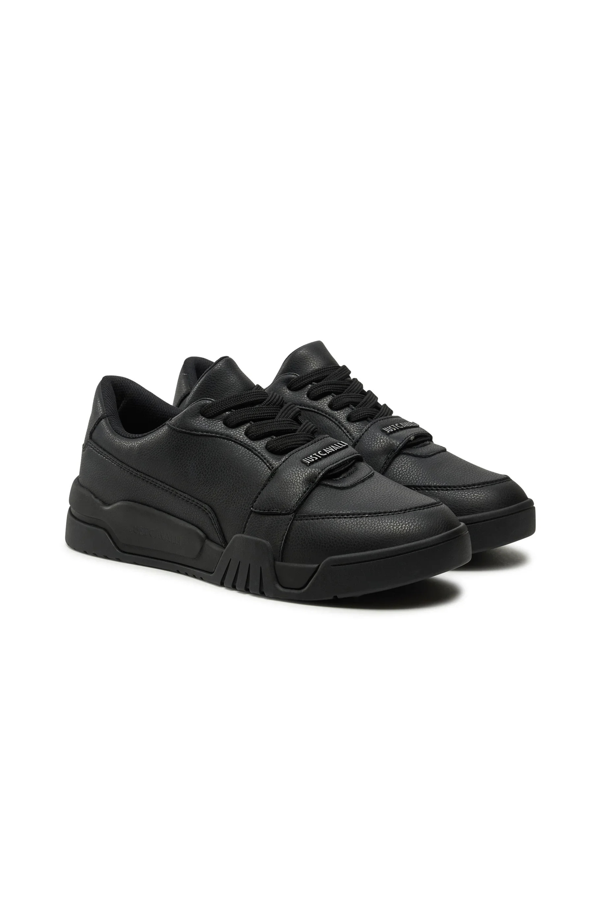 Sapatilha Preta Just Cavalli com logo em chapa metalizado