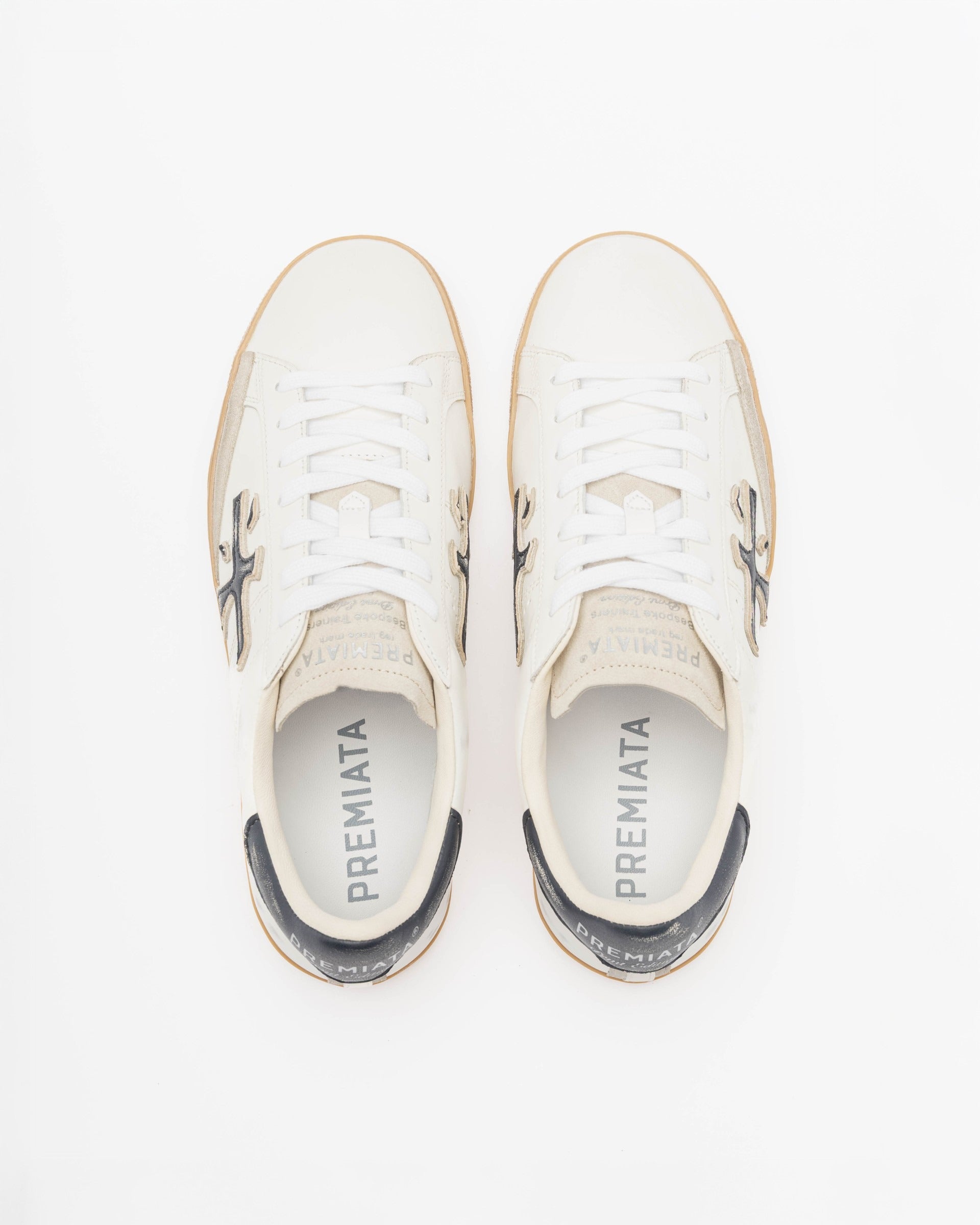 Confeccionados em couro com efeito usado, estes ténis distinguem-se pelo seu logótipo em camurça e um calcanhar único.